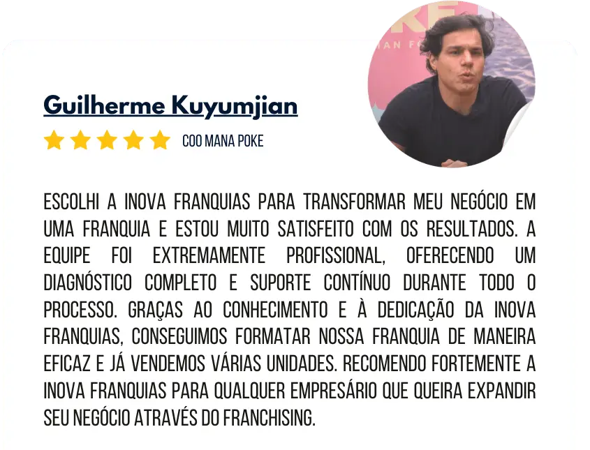 Ao franquear seu negócio com a Inova Franquias, você se beneficia de nossa vasta experiência e expertise comprovada no mercado de franquias. Oferecemos uma abordagem personalizada, suporte jurídico completo, e estratégias de expansão baseadas em dados. Além disso, nossa reputação de excelência e satisfação do cliente garante que você esteja em boas mãos ao expandir seu negócio.
